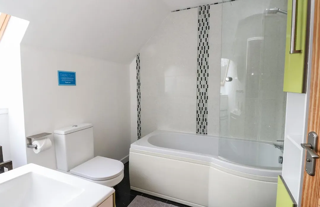 La Villa Lurach House dispone de un cuarto de baño con ducha a ras de suelo y lavadora.